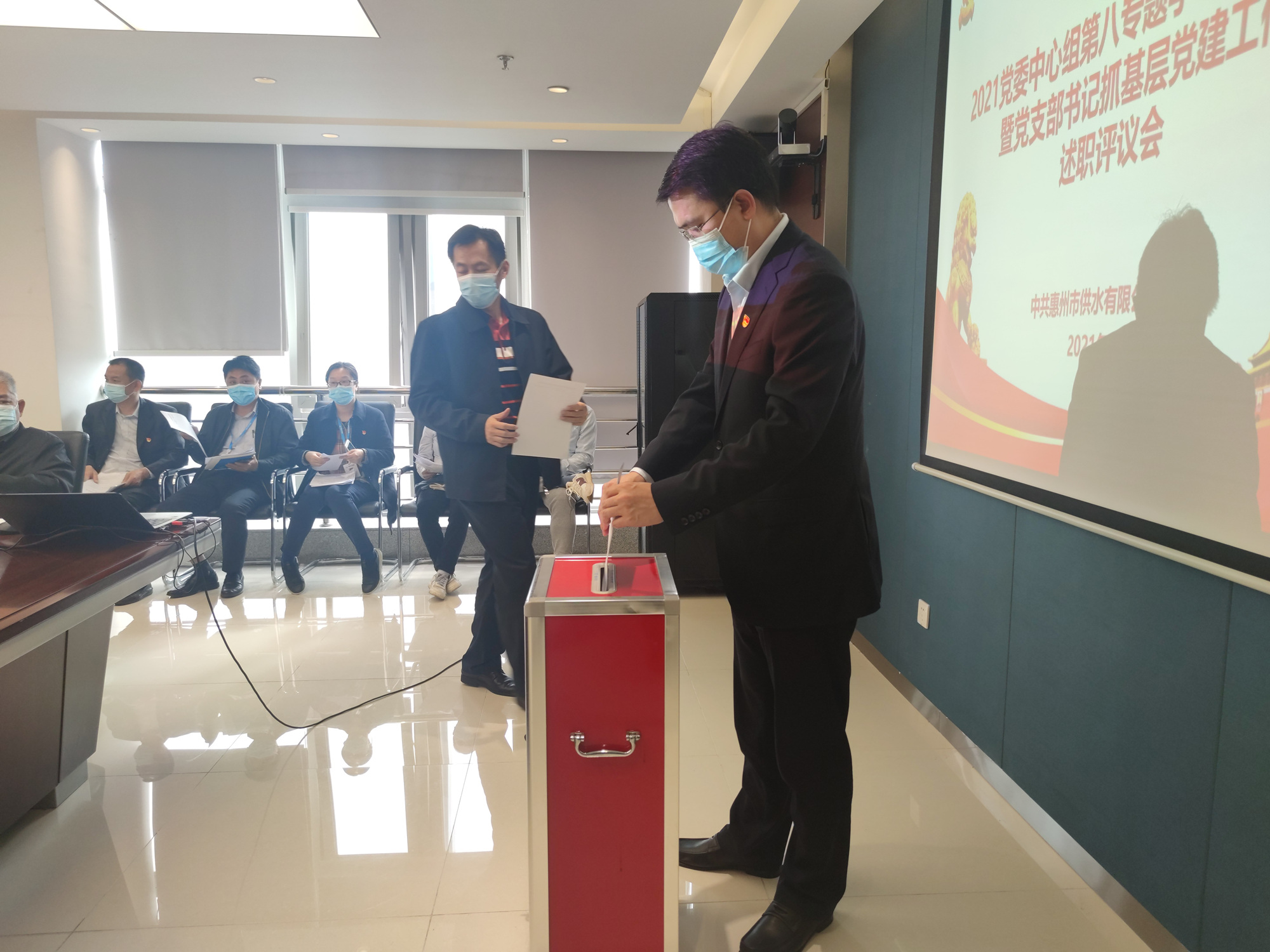隨后,行政二支部、河南岸水廠支部、江北水廠支部、永湖分公司支部、仲愷水務(wù)分公司支部、江南分公司支部等6名黨支部書記圍繞開展黨史學(xué)習(xí)教育、貫徹《中國共產(chǎn)黨國有企業(yè)基層組織工作條例(試行)》、組織實(shí)施基層黨建三年行動(dòng)計(jì)劃及為群眾辦實(shí)事等方面內(nèi)容依次述職,其他黨支部書記進(jìn)行書面述職。述職完畢,與會(huì)人員對(duì)全體黨支部書記的履職情況進(jìn)行民主測評(píng),市供水有限公司黨委將結(jié)合日常黨建考核結(jié)果,綜合評(píng)定其等次,量化評(píng)價(jià)支部黨建工作成效。