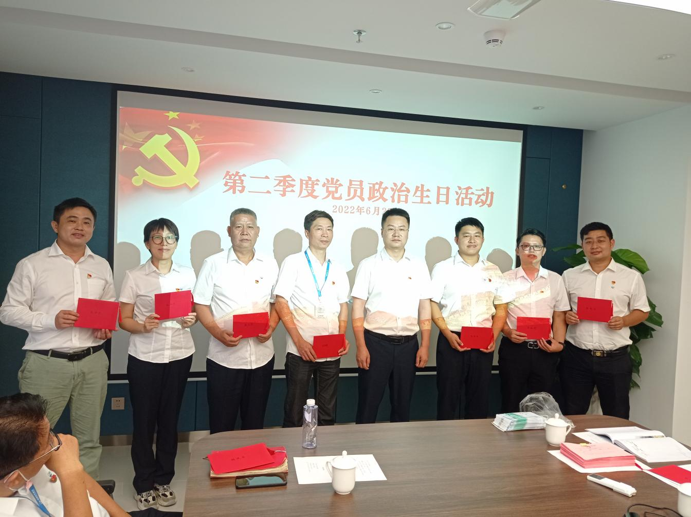 隨后,公司黨支部為第二季度政治生日的黨員過了一場極富意義的政治生日活動。以內(nèi)容豐富的企業(yè)宣傳視頻、鏗鏘有力的入黨誓詞,意義非凡的“生日”賀卡、發(fā)自肺腑的“生日”感言,引領(lǐng)黨員們在干事創(chuàng)業(yè)的熱潮中重溫了入黨經(jīng)歷,將“政治生日”印刻在他們的記憶深處,時刻牢記自己的“第一身份”,永葆入黨初心。